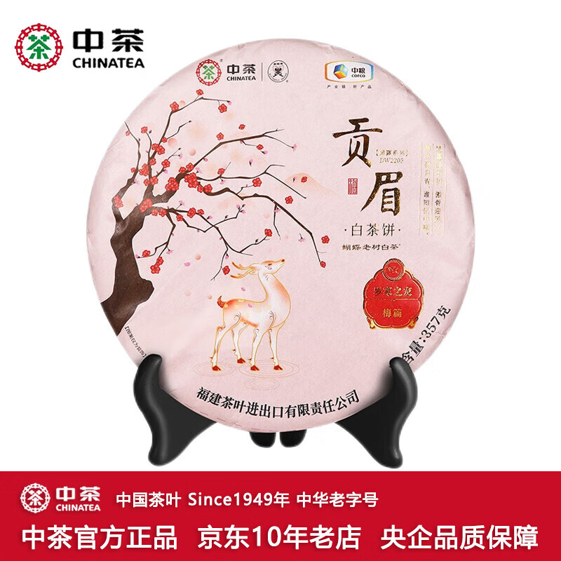 中茶牌茶叶 蝴蝶福建白茶 2020年岁寒三友之梅篇贡眉白茶饼 单饼装 357g*1饼