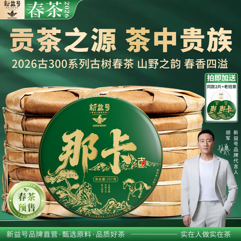 新益号普洱茶生茶饼2026新茶春茶古300那卡古树茶云南七子饼茶生普茶叶 14饼笋壳装+2片再送老班章1片【26年预售】4998g