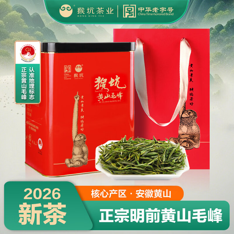 猴坑2026新茶上市 明前黄山毛峰猴坑原产250克一级罐装安徽绿茶叶春茶 250g*1罐