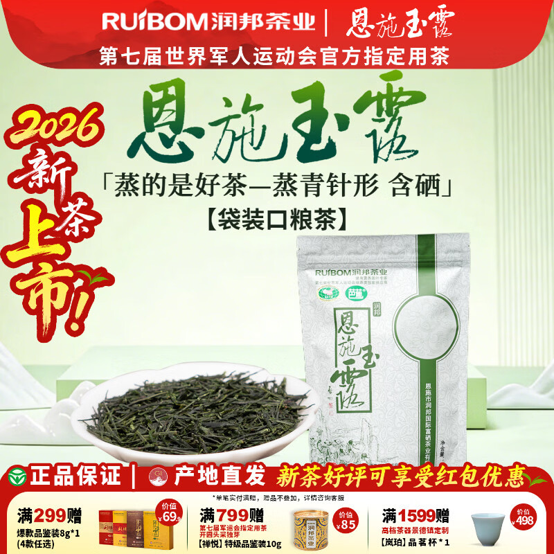 恩施玉露润邦茶业2026年新茶一级自己喝的蒸青绿茶高性价比办公商务口粮茶 100g*1袋