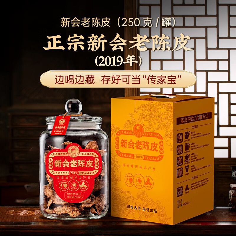 茶妈妈新会陈皮2019年澜沧古茶老陈皮6年陈礼盒 送礼柑皮泡茶叶 250g*1罐