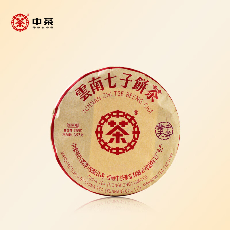 中茶普洱茶 2018年紫天熟茶普洱茶 熟茶 饼茶 茶叶 357g/饼 单饼装357g*1饼