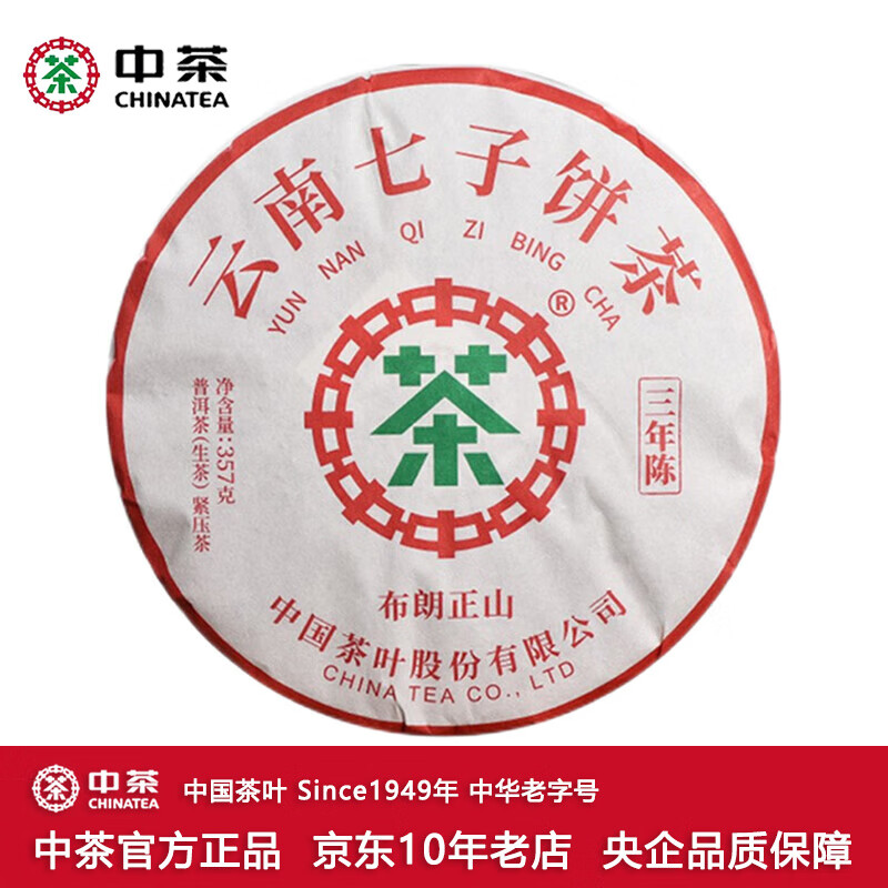 中茶牌茶叶 云南普洱茶 2022年布朗正山三年陈生茶饼 单饼装 357克 * 1饼