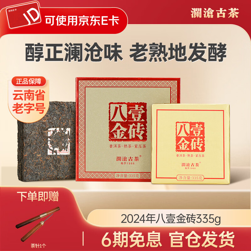 澜沧古茶普洱茶八壹金砖云南普洱熟普335g 2024年砖茶盒装 1砖