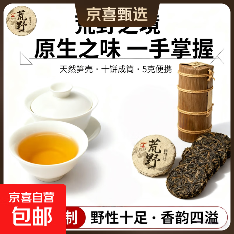 荒野普洱茶生茶茶叶竹筒笋壳包扎小茶饼浓香型 5g*1饼(单片无笋壳)