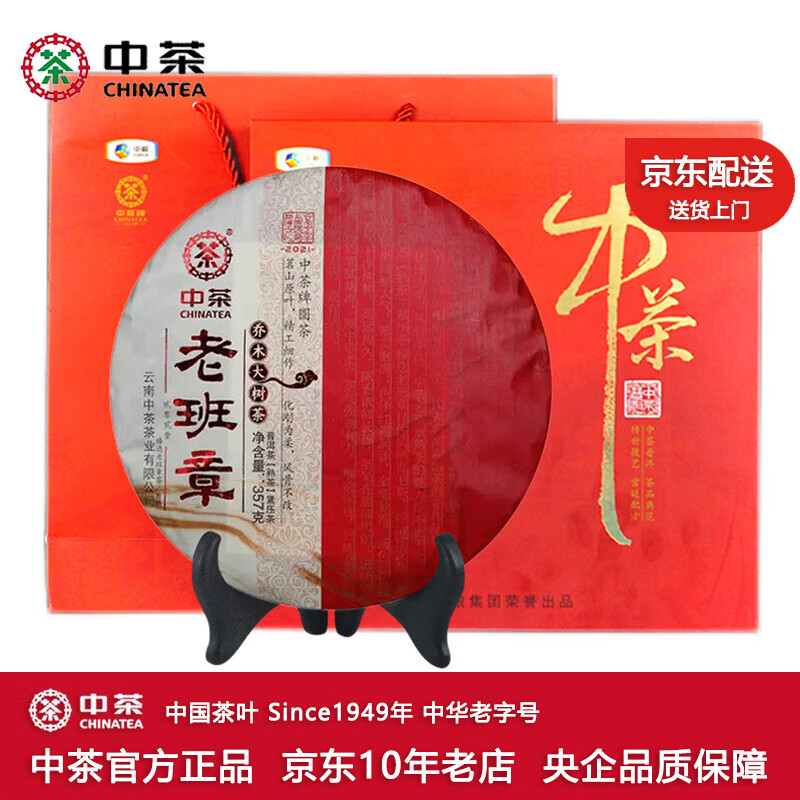 中茶 老班章茶叶 云南普洱茶 2021年老班章茗山乔木大树熟茶饼 礼盒装 357克 * 1饼