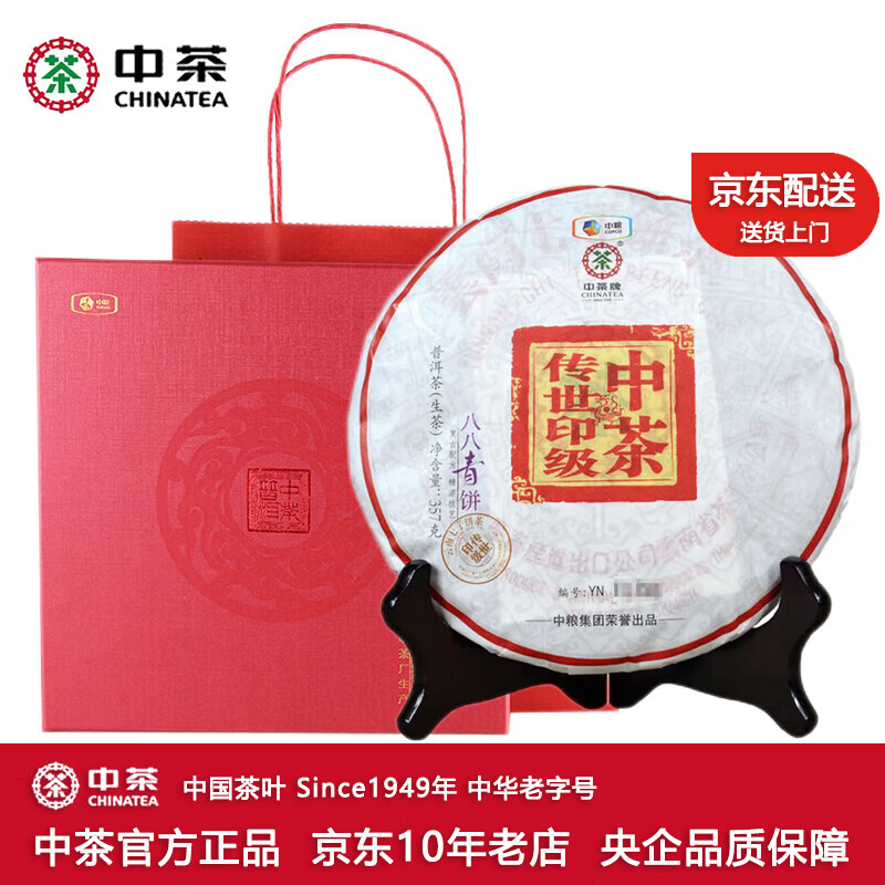 中茶传世印级 云南普洱茶叶 八八青88青国内版生茶饼 2016年 礼盒装 357g*1盒