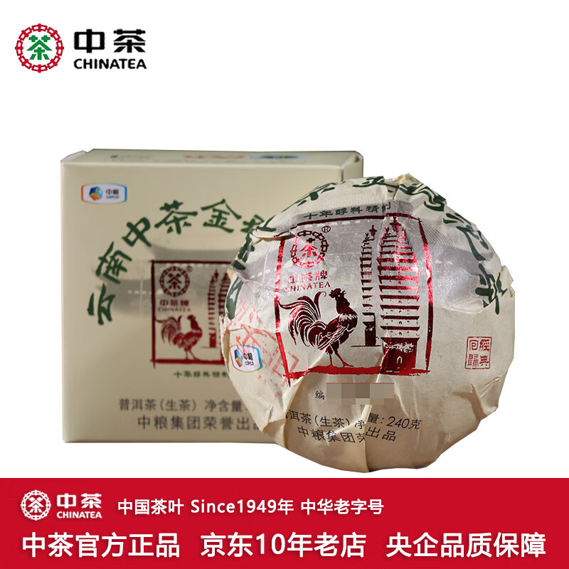 中茶牌茶叶 云南普洱茶 2018年金鸡沱茶十年陈 2008年陈化生茶沱 大盒单盒装 240克 * 1盒