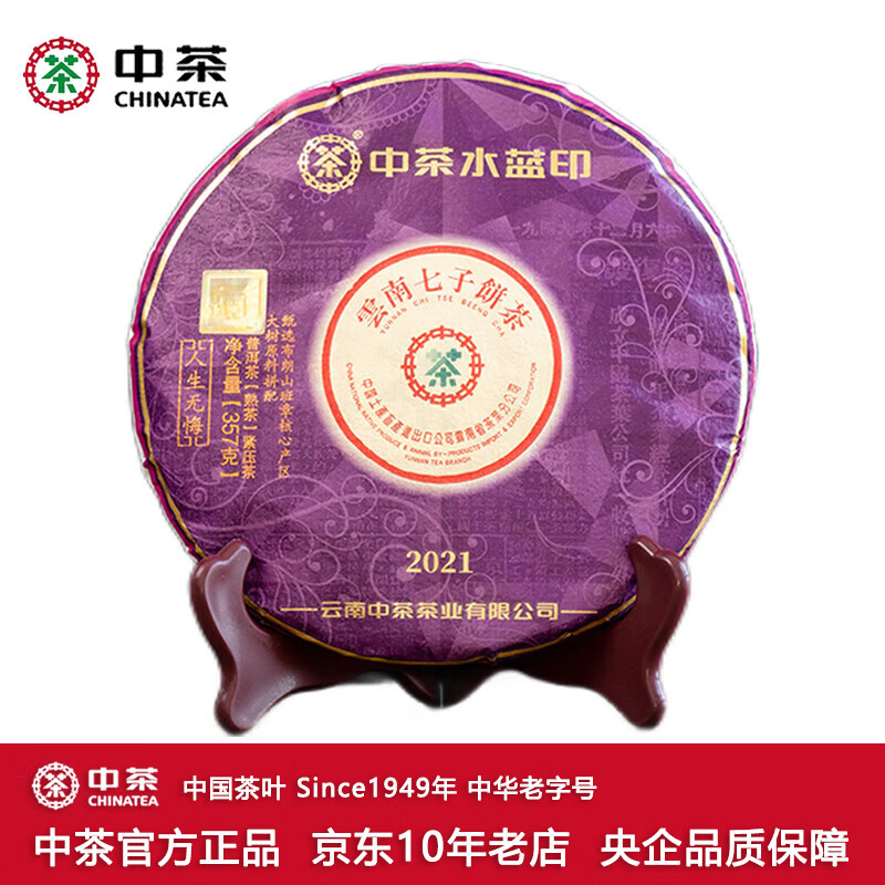 中茶传世印级 云南普洱茶叶 2021年水蓝印班章大树熟茶饼 单饼装 357g*1饼