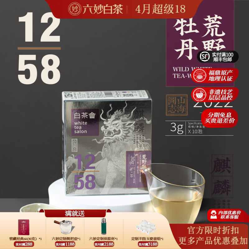 六妙白茶会茶叶散茶2022年荒野一级白牡丹福鼎白茶泡袋装 30g*1盒