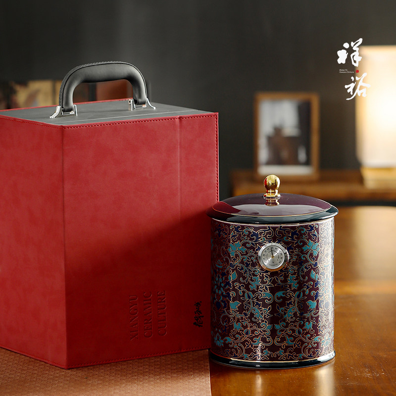 祥裕春华秋实珐琅彩茶叶罐家用陶瓷储存罐密封罐高档茶罐收纳罐