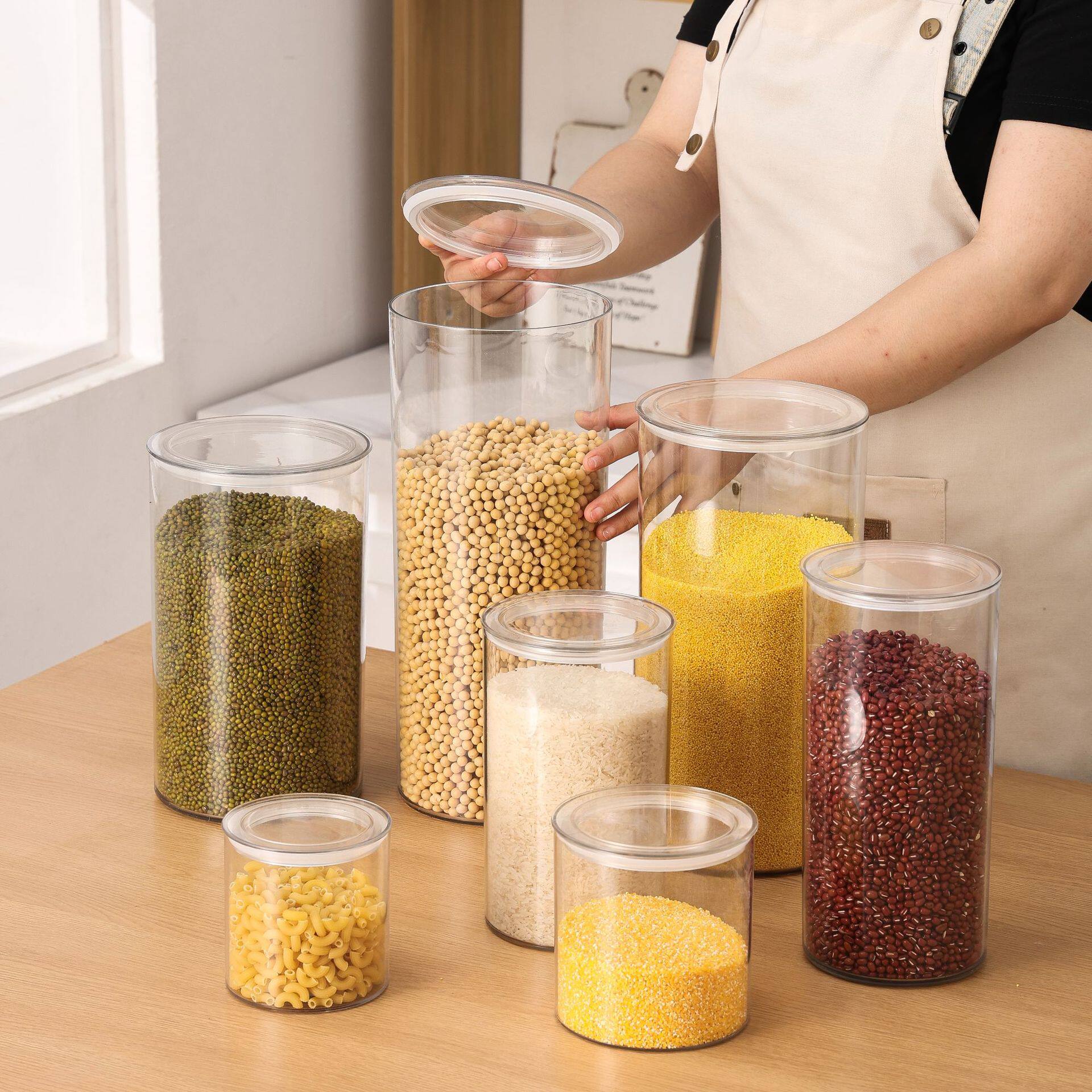 透明塑料罐子密封罐储物罐带盖圆形干果茶叶厨房桌面装饰摆件