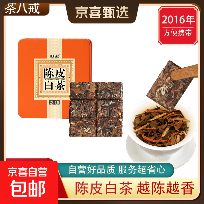 陈皮白茶福鼎老白茶2016寿眉小方片铁盒茶饼枣香浓郁紧压高山茶叶 陈皮白茶 1盒30g