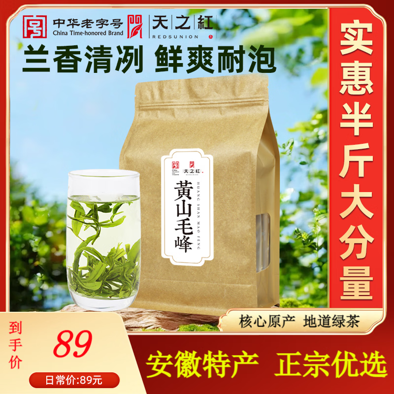 天之红2025黄山毛峰雨前茶安徽 茶叶绿茶口粮茶 一级 250g*1袋