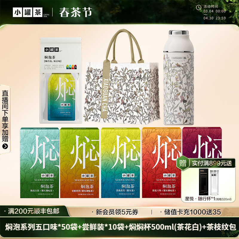 小罐茶 焖泡茶茉莉普洱黑乌龙陈皮白组合茶26年伴手礼 焖泡全系列2.5g*60袋+焖焖杯500ml*1+茶枝纹手提包*1