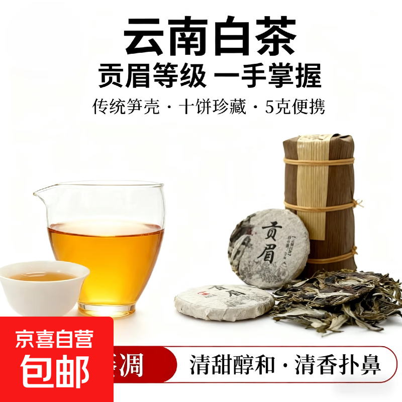 云南贡眉白茶月光白茶叶陈香一次一片可泡可煮 云南白茶贡茶 5g*1片