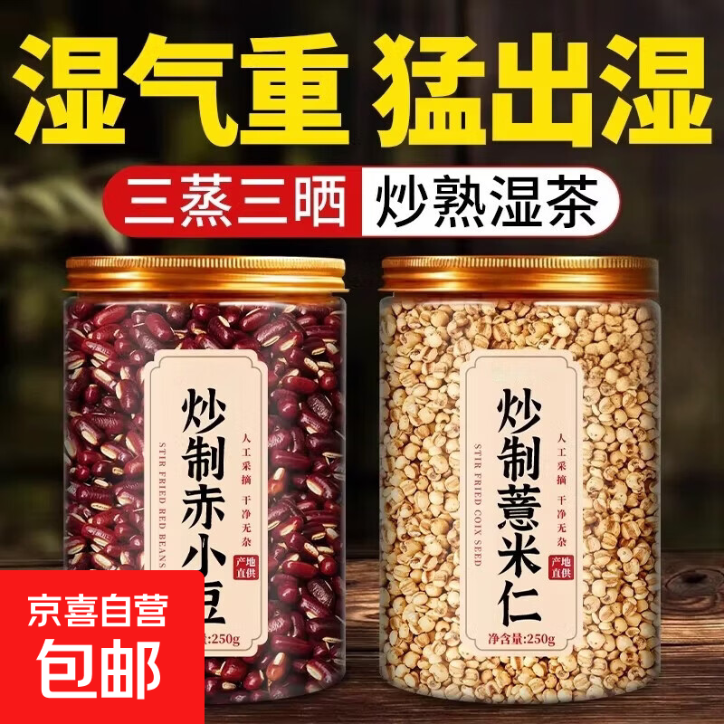 炒制红豆薏米祛湿茶去湿气茶芡实赤豆炒薏米仁三蒸三晒 炒熟赤小豆250g*1罐文火慢炒
