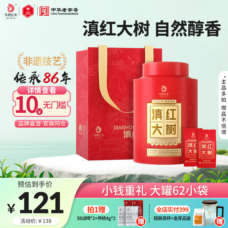 凤牌红茶伴手礼滇红大树一级浓香独立小包云南茶叶248g节日送礼