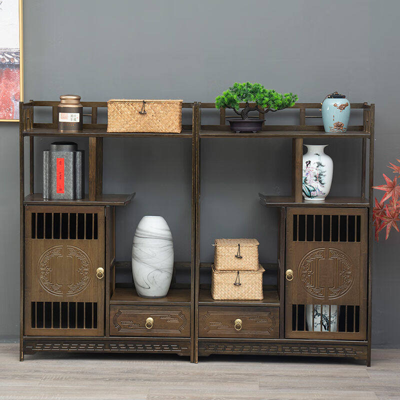 新中式茶水柜茶室置物架小型博古架多层茶柜茶叶收纳柜茶具摆放架