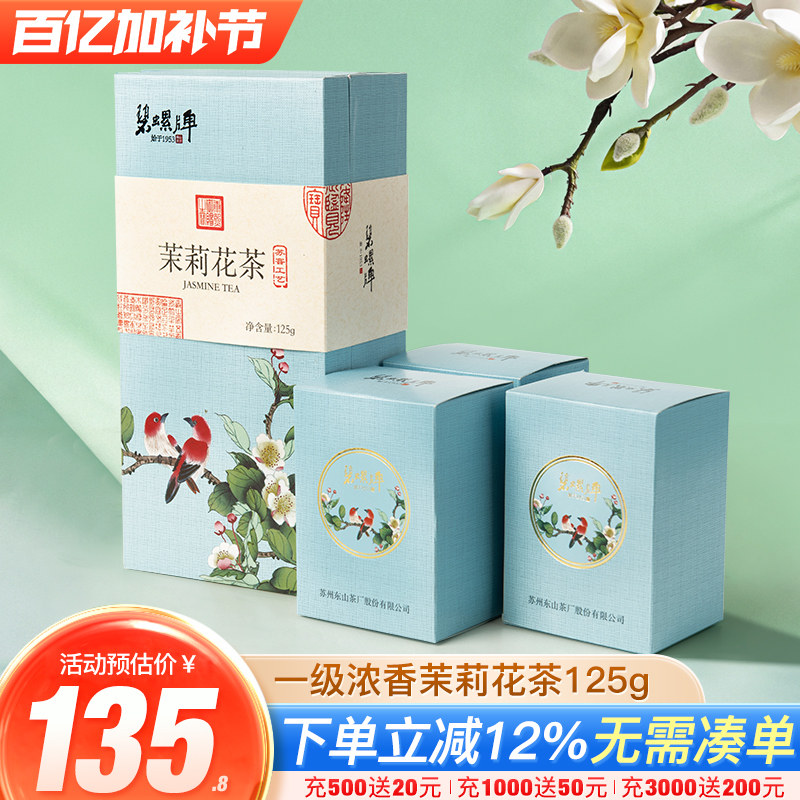 碧螺洞庭四窨碧螺春茉莉花茶叶东山茶厂一级浓香茉莉花茶礼盒125g