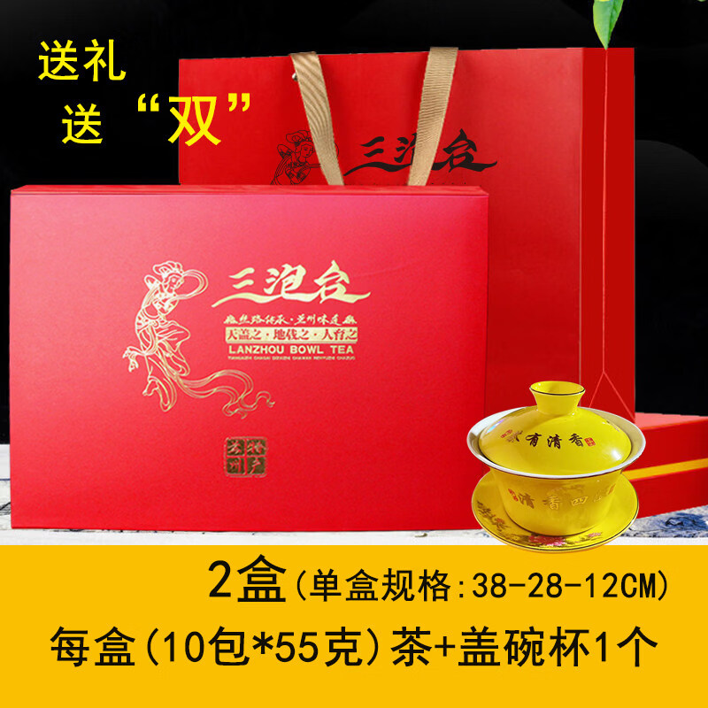 甘肃兰州特产老冰糖桂圆红枣枸杞三泡台盖碗三炮台八宝茶送礼礼盒 【送礼送双】2盒(每盒10包茶+盖碗杯1个+礼袋1个))
