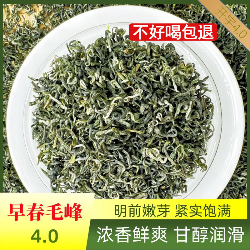 开宇早春毛峰茶叶绿茶2026新茶高山嫩芽特级香型口粮茶自己喝4.0散装 250g*2罐 赠送1个手提袋