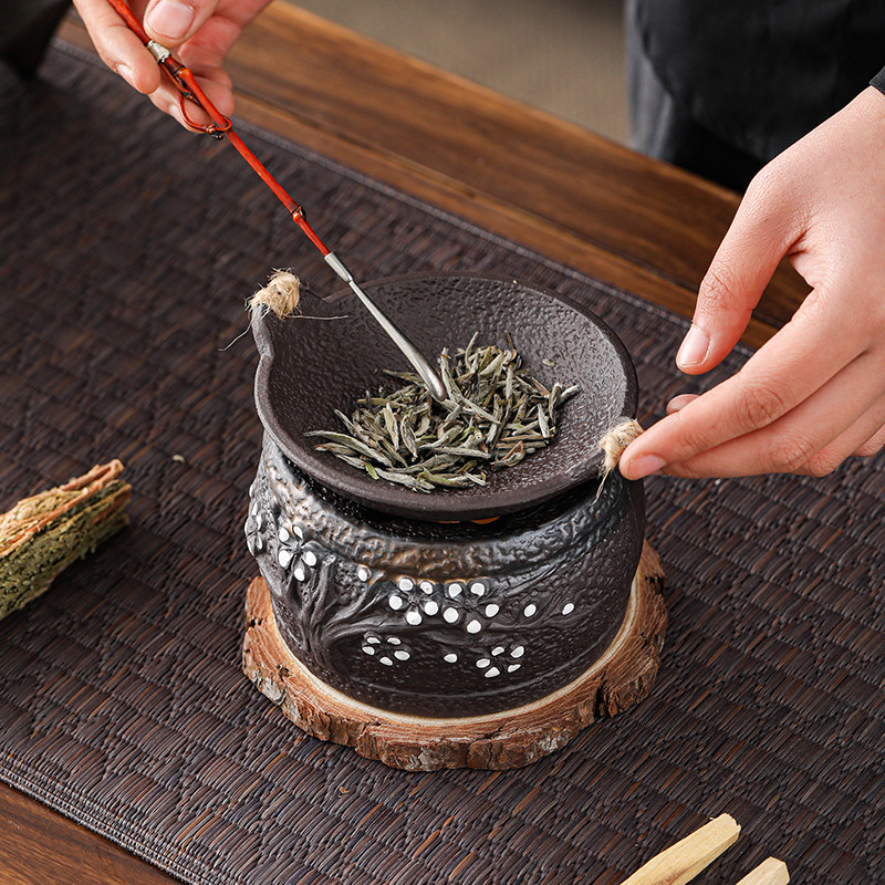 陶瓷熏香烤茶炉套组加热温茶炉茶叶提香炒茶器烘焙茶瓦片暖茶烤炉