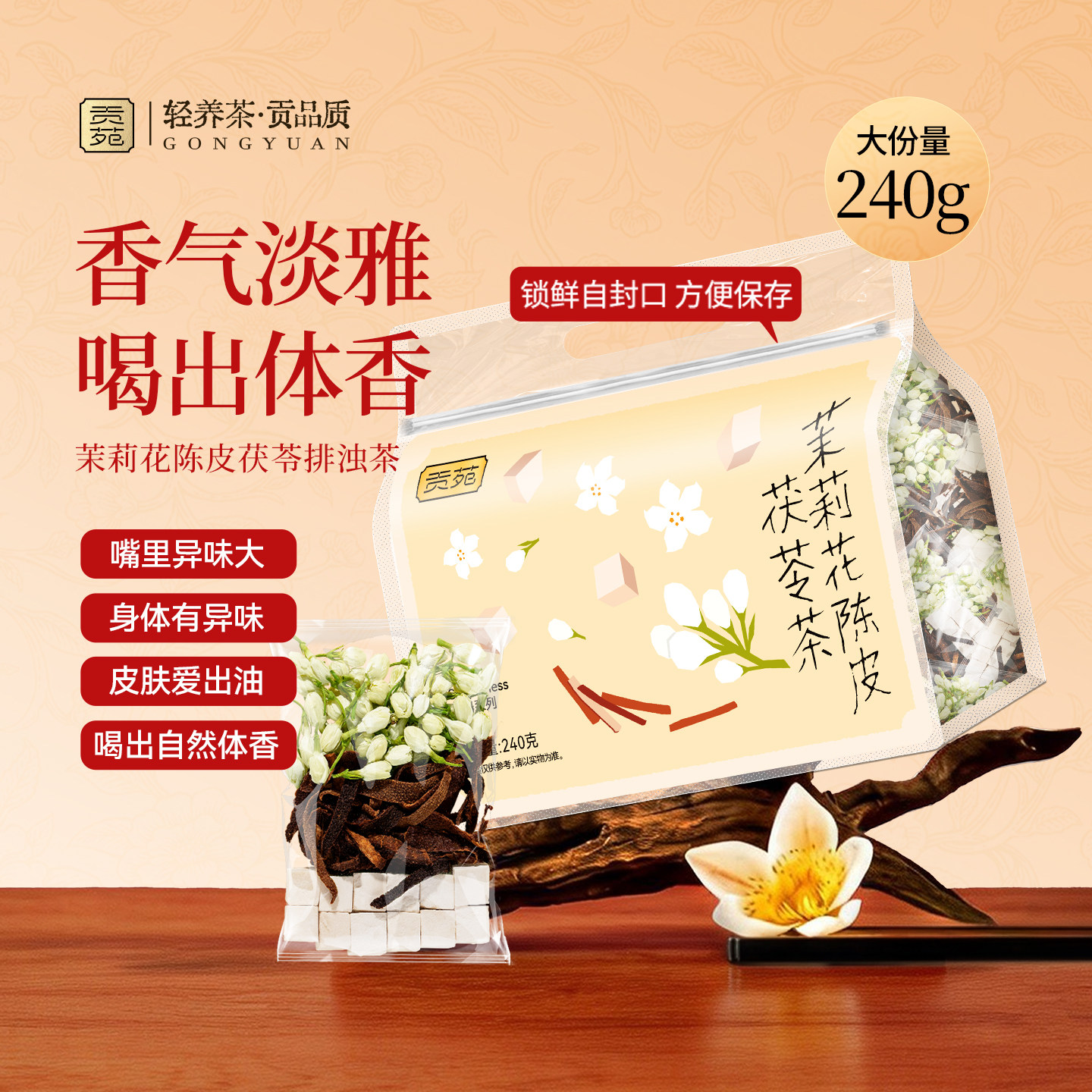 贡苑茉莉花茯苓陈皮排浊气体香茶包240g高级中药材正品官方旗舰店