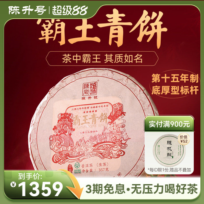 2023陈升号霸王青饼357g普洱茶生茶饼云南勐海普洱茶饼生茶叶饼茶