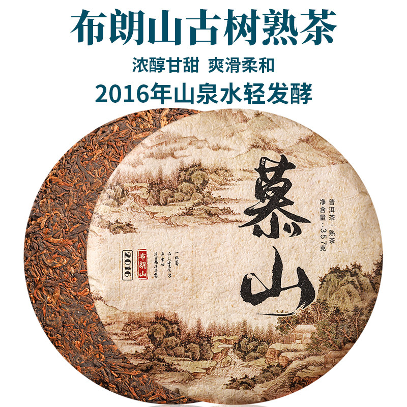 云南普洱茶熟茶勐海布朗山离地轻发酵慕山浓香陈香型熟饼茶叶357g