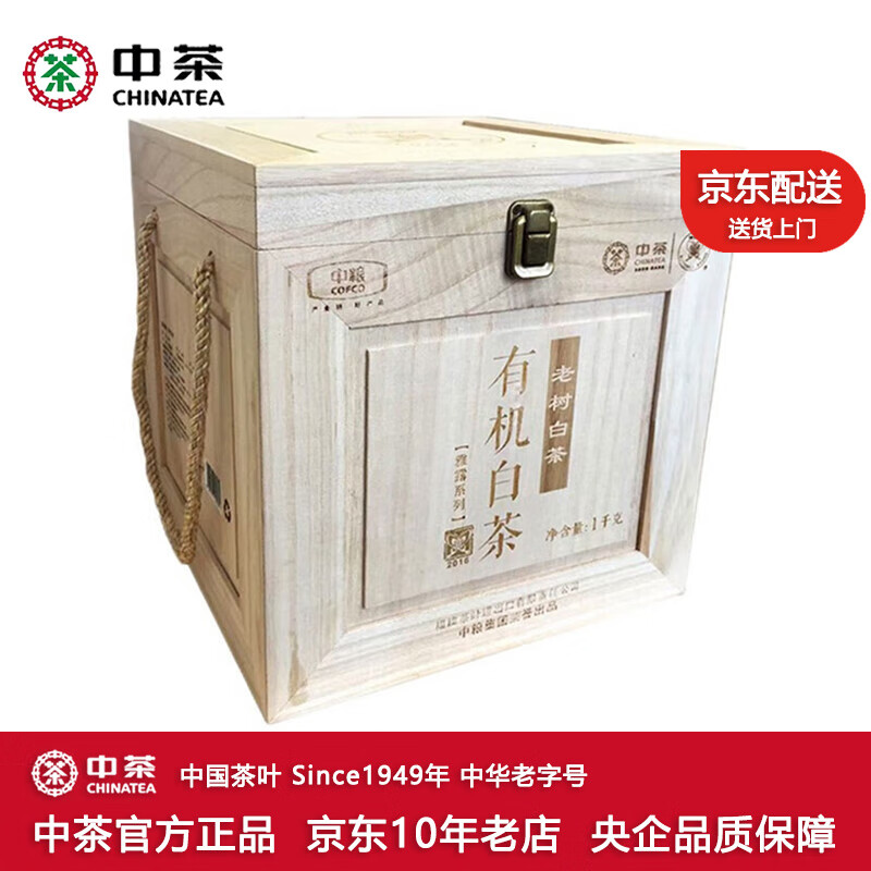 中茶牌茶叶 蝴蝶松溪白茶 有机白茶OWT5116特级散茶木盒装 2016年 整箱装 1kg*2盒