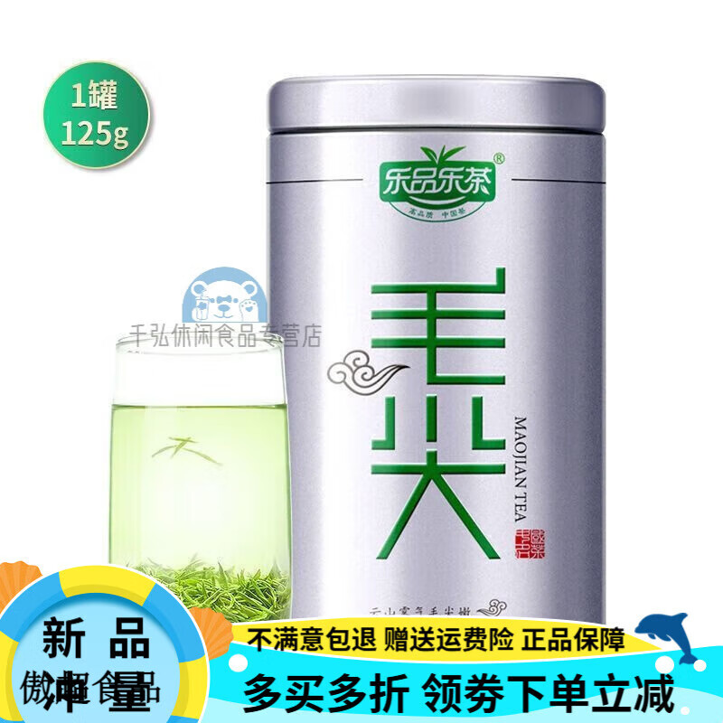 乐品乐茶毛尖明前绿茶新茶叶2罐250g嫩芽春茶礼盒1罐125g 银罐毛尖125g*1罐
