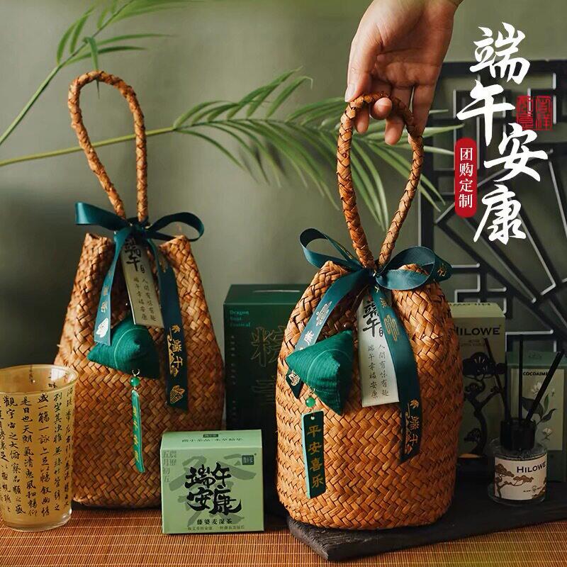 2026国风端午伴手礼礼盒茶叶咸鸭蛋粽子特产包装盒草编手提礼品篮