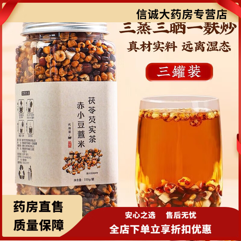 松仁堂炒熟赤小豆薏米茯苓芡实祛湿茶煮水红豆水养生茶中药材xl周期装远 周期装远离湿态买2送1 到手