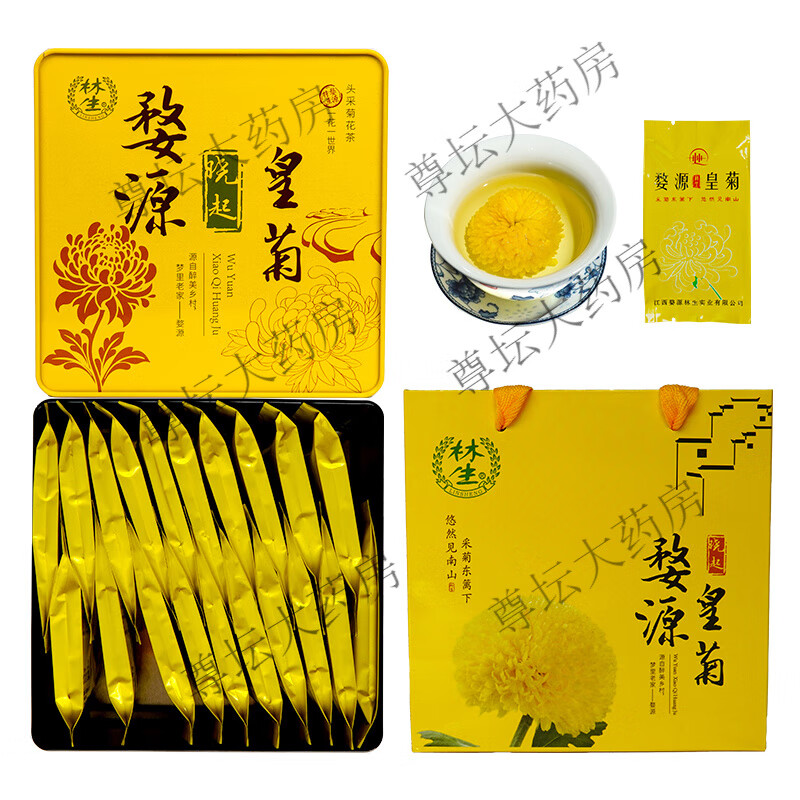 通用江西婺源皇菊黄菊特产旗舰晓起贡菊茶礼盒装菊花茶级 铁盒买1发2盒(贈枸杞)