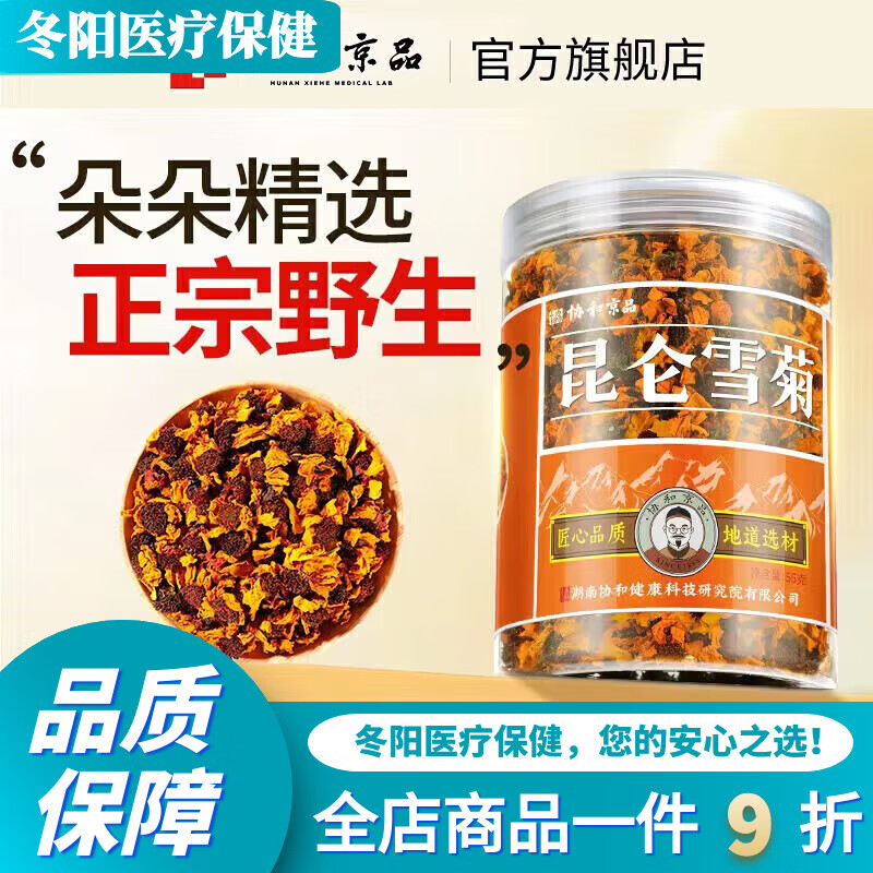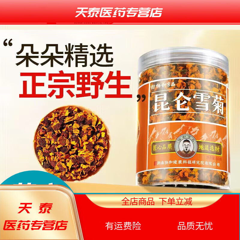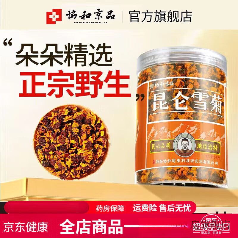 协和京品昆仑雪菊养生花草茶昆仑天山雪菊新疆特产胎菊特级菊花茶搭罗布 雪菊两罐装(买1发2)