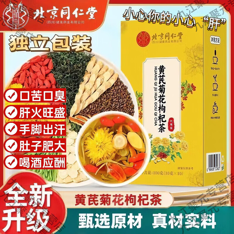 同仁堂(TRT)黄芪菊花枸杞茶养肝护肝西洋参清肝排毒口苦口臭清热熬夜养生茶饮 西洋参黄芪菊花枸杞茶 1支*1罐 小规格:【散装2包】