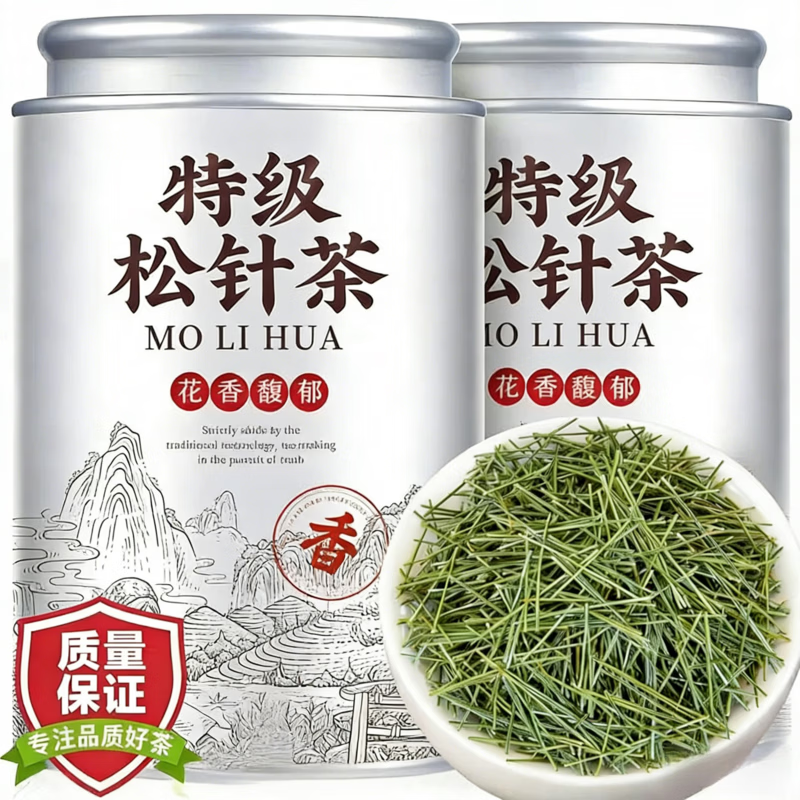 溥畔胖东来同款松针茶特级野生马尾秦岭东北长白山野生阴干松针茶叶 【老树新枝 色泽青绿】 1支*1罐 当季新货【松针茶250··克*2袋】共500··克