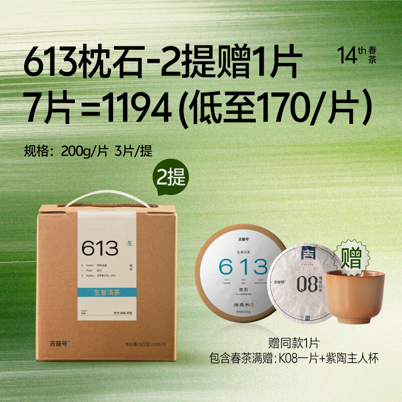 吉普号 【预售】613枕石 邦东古树春料生茶 兰香雅致苏鲜香 普洱茶 茶叶 【预售】26年613枕石2提多送1片