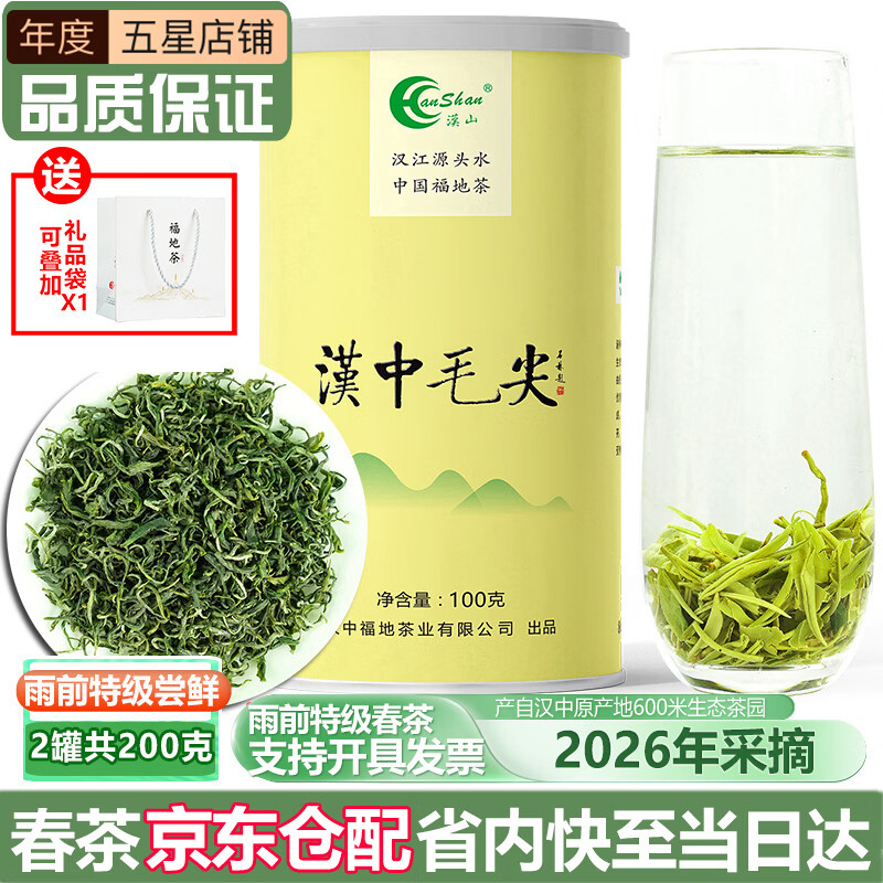 汉山春茶2026新茶汉中毛尖绿茶高山云雾浓香型茶叶冷泡绿茶送礼品 2026年采摘L1款雨前特级 100g*2罐 配礼袋