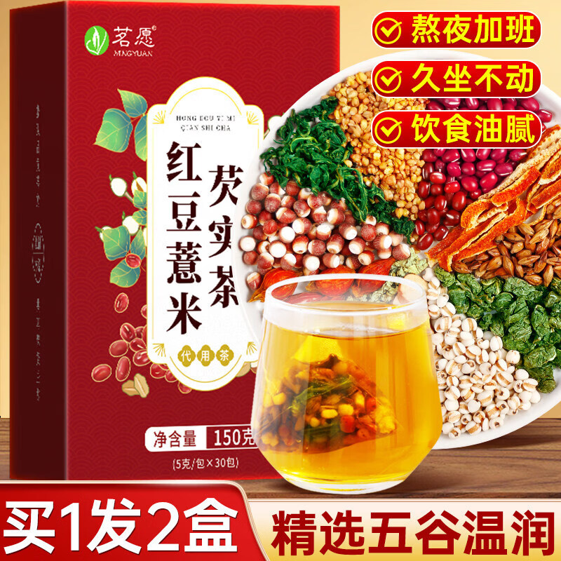 另善堂炒薏米茯苓陈皮红豆芡实茶赤小豆熟三伏天女性泡水养生 【买1+1盒】实惠装 30包*2盒
