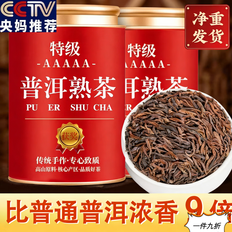 另善堂普洱茶减肥减脂刮油特级正宗糯香普洱茶熟普陈年茶叶 正宗 云南核心产区【十五年老料】 100g*1罐 2罐特级普洱熟茶