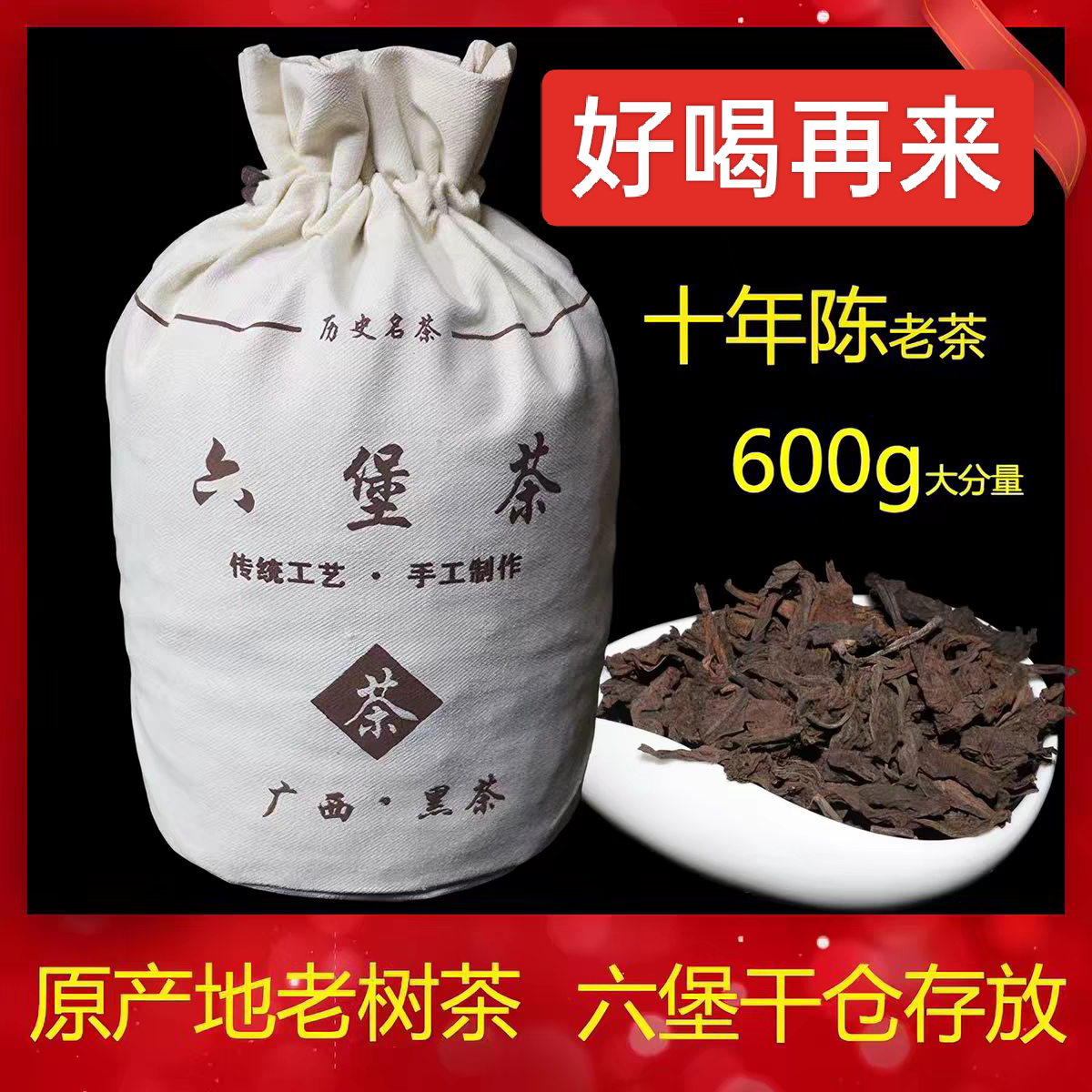 0103十年陈梧州老六堡茶春茶散黑茶600g布袋装槟榔香陈香熟茶茶叶
