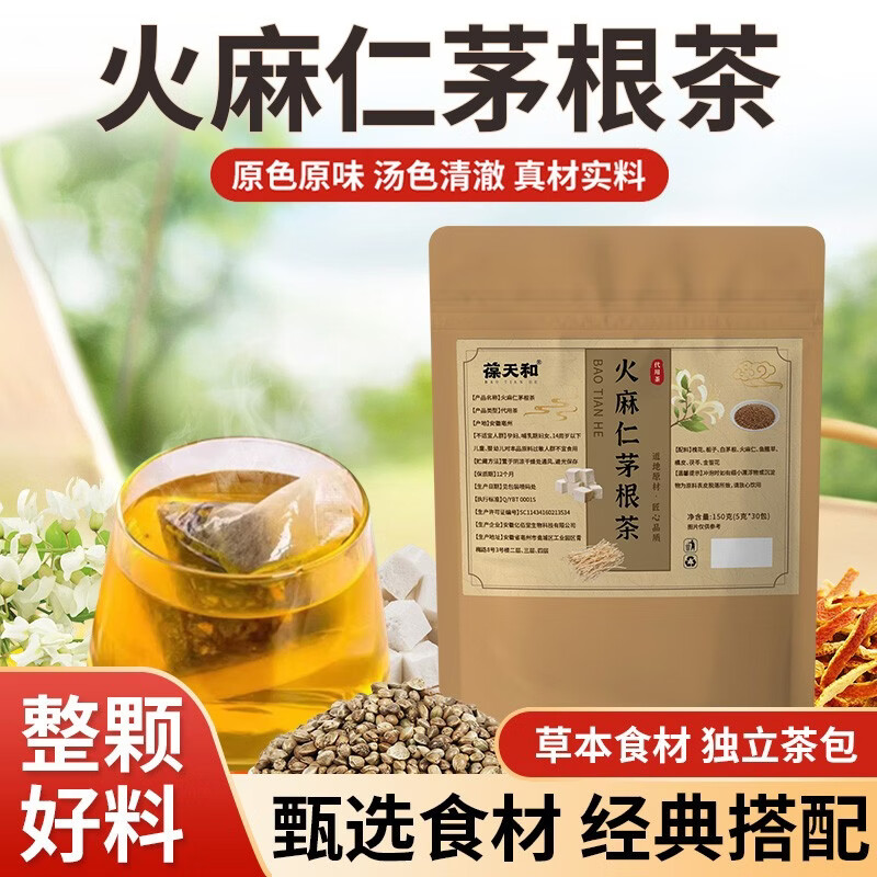 葆天和 【火麻仁茅根茶】精选八味草本 植物养生袋泡茶 150g*3盒 【买2送1】