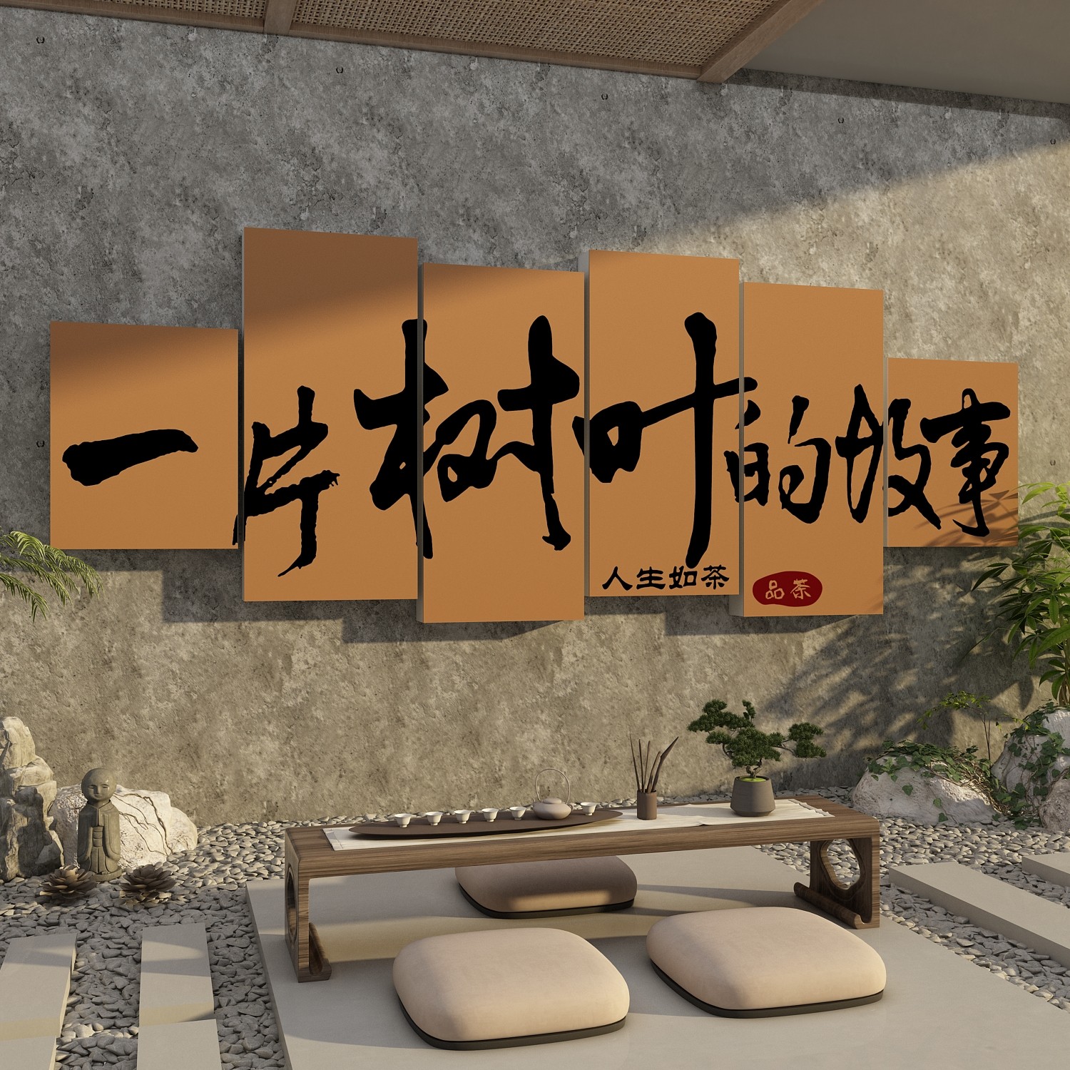 茶室氛围布置高级感网红茶叶店背景墙面装饰贴画民宿禅意古风文化