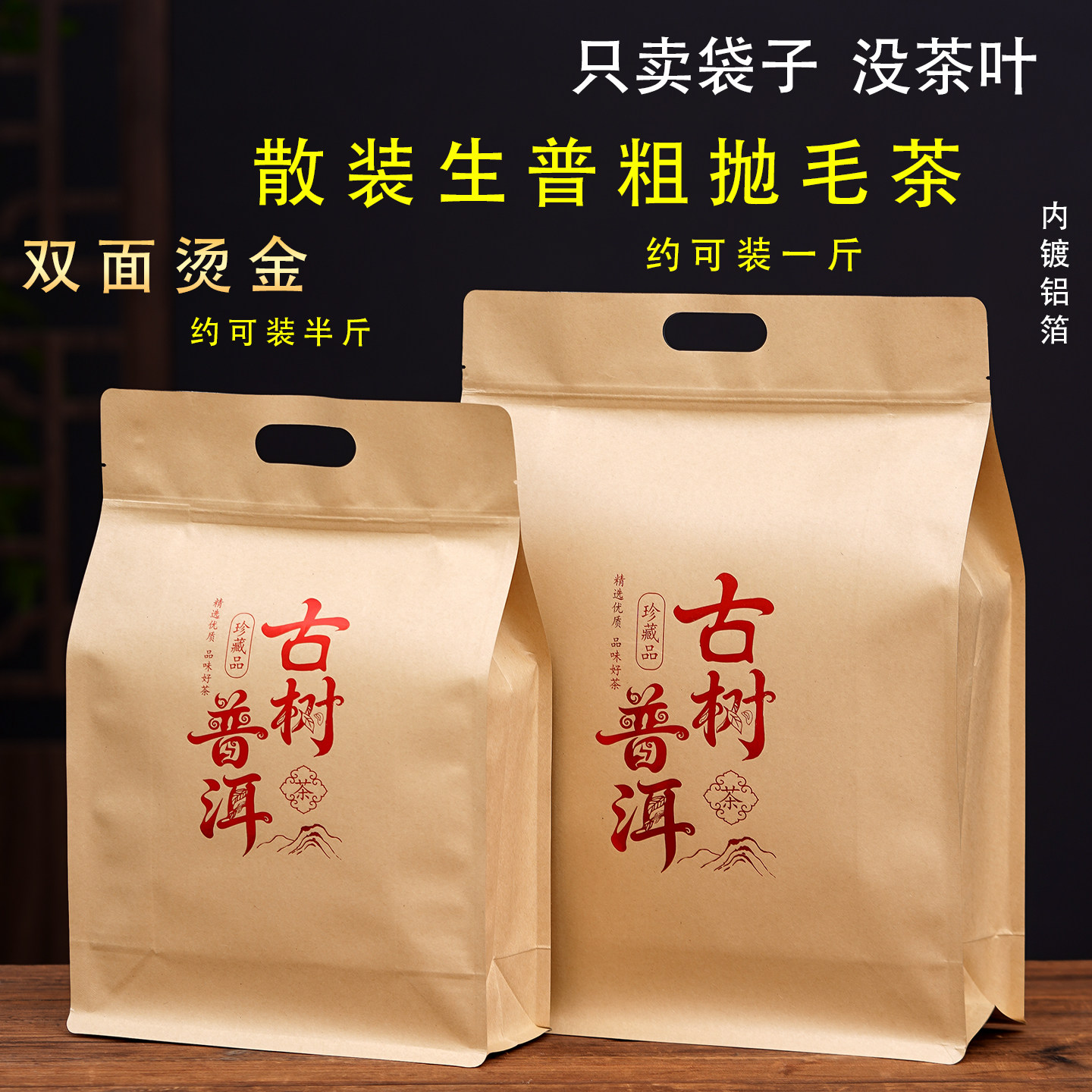 古树普洱茶密封袋散装生普茶叶包装袋半斤一斤装加厚牛皮纸防潮袋