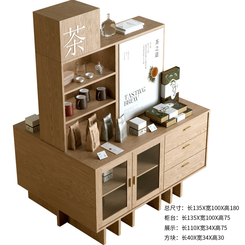 中岛台新派茶室流水台新式茶居茶叶展示柜中式货架商品陈列柜长桌