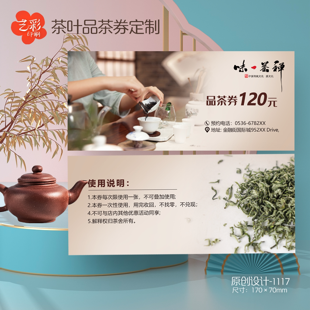 50款茶楼馆店茶叶茶行喝品茶券茶艺优惠代金体验券卡卷订定制设计