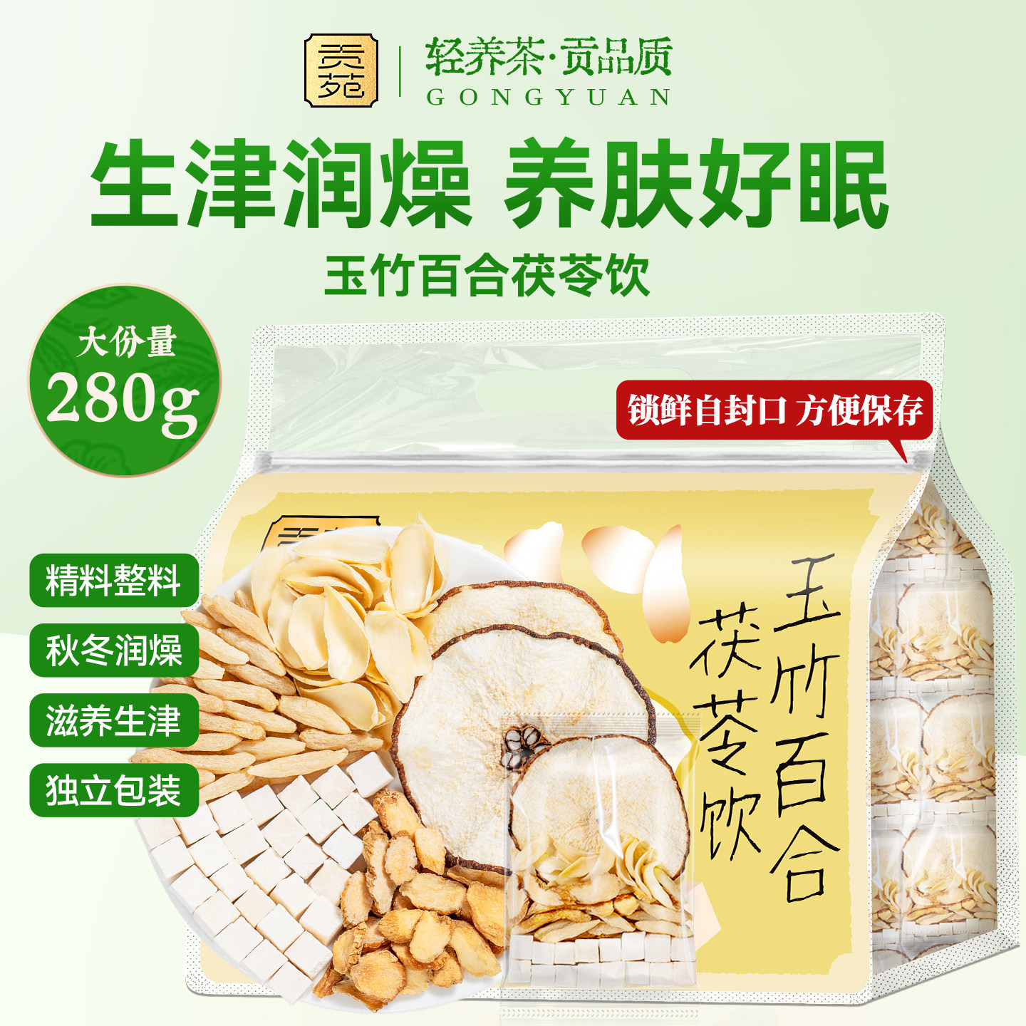 贡苑玉竹百合茯苓饮280g大份量泡水喝饮品养生茶包嘴干润官方旗舰
