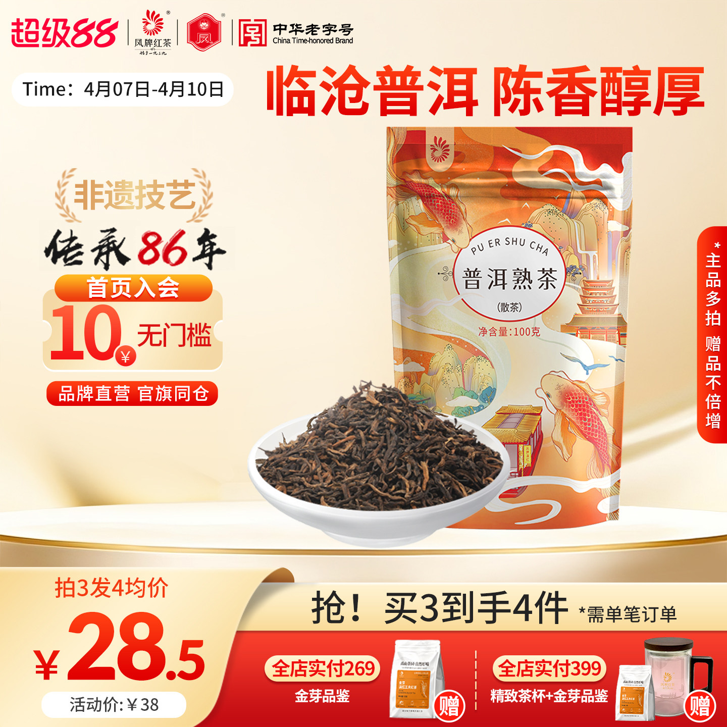 凤牌茶叶普洱熟茶云南凤庆正宗临沧普洱茶100g散装熟普陈香袋装
